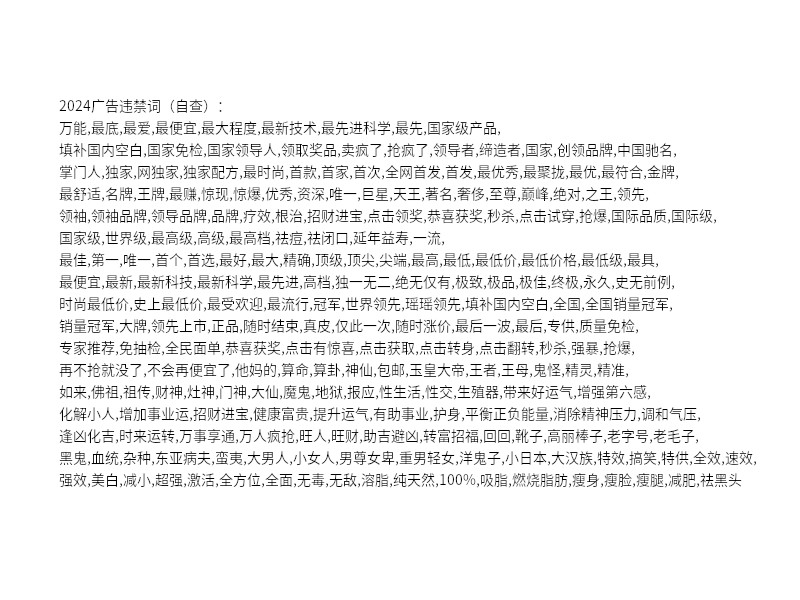 廣告違禁詞風險提示: